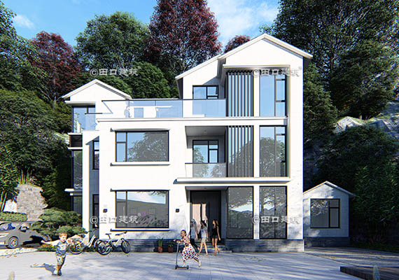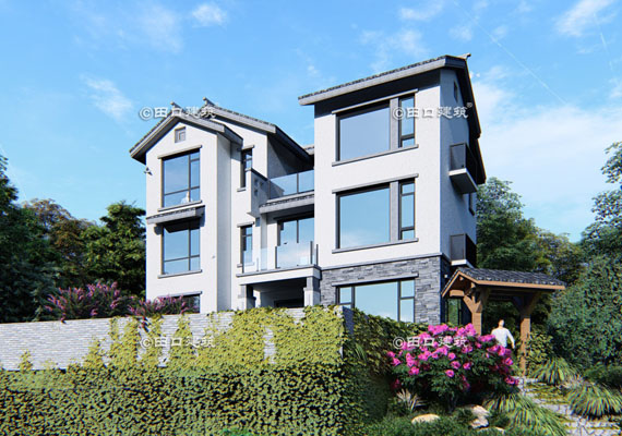 占地面積 120.0㎡ 土建造價 40.0萬 山腳下三層新中式小院